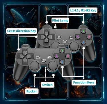 [2.4GHz Wireless Controllers - Smooth & Responsive Play] Enjoy lag-free gaming with dual 2.4GHz wireless controllers. With up to 40ft of stable range and ergonomic design, you get precise control and all-day comfort for solo or multiplayer sessions.